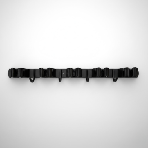 - Maximale opslag: voorzien van 5 sterke klemhouders die elke steel (van dunne zwabber tot dikke bezem) muurvast grijpen, én 4 stevige haken voor je stofblik, poetsdoeken of tuingereedschap.